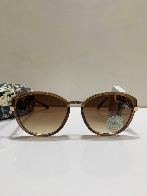فریم گرد و خوشفرم این مدل با رنگ قهوهای شفاف و جزئیات ظریف طلایی، بدون اینکه اغراق کند، به استایل شما یک جلوه شیک و مرتب میدهد. لنزهای گرادیانت قهوهای، از بالا تیره و به سمت پایین روشنتر میشوند تا هم از چشمهایتان محافظت کنند و هم نگاهتان را طبیعی و جذاب نشان دهند.
